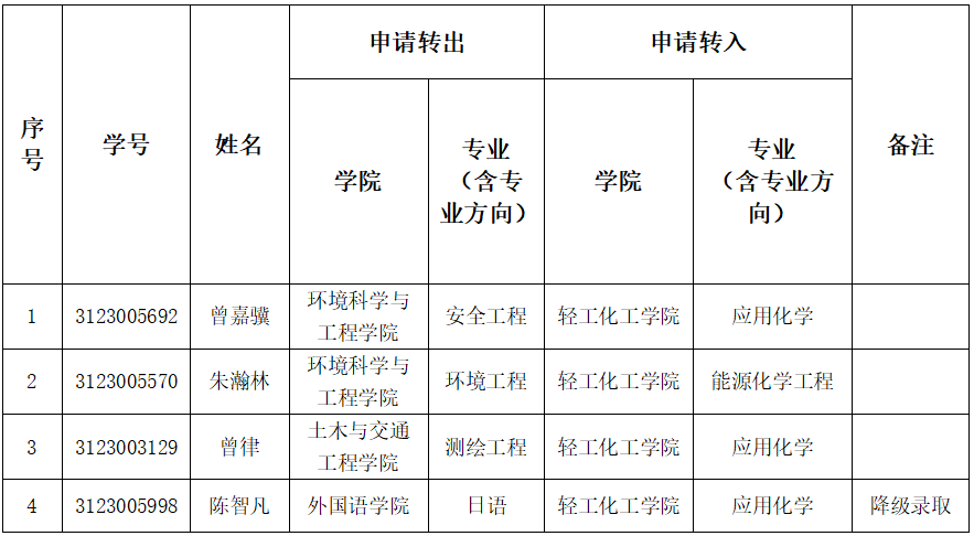 本科生转专业录取名单公示及办理转专业注册手续请关注学校教务处通知。