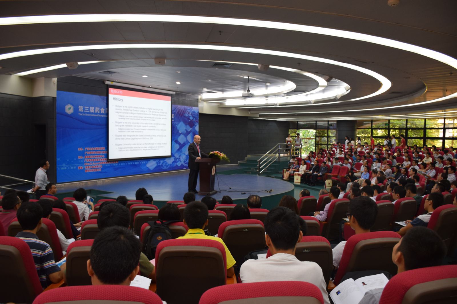 会议议程安排紧凑,开幕式上张力副校长、Rutgers大学副校长Chrisopher J. Molloy先生、广东药学会领导及会议赞助商中山完美公司领导依次致辞,随后迅速进入会议主题。13位专家代表先后做了精彩的大会报告,介绍了各自团队在药理、药化、中药化学、药食同源等多个方面的前沿工作,给在场的300多名与会代表开了一个学术盛宴。会议期间,大家还一起缅怀了为建立拷贝漫画