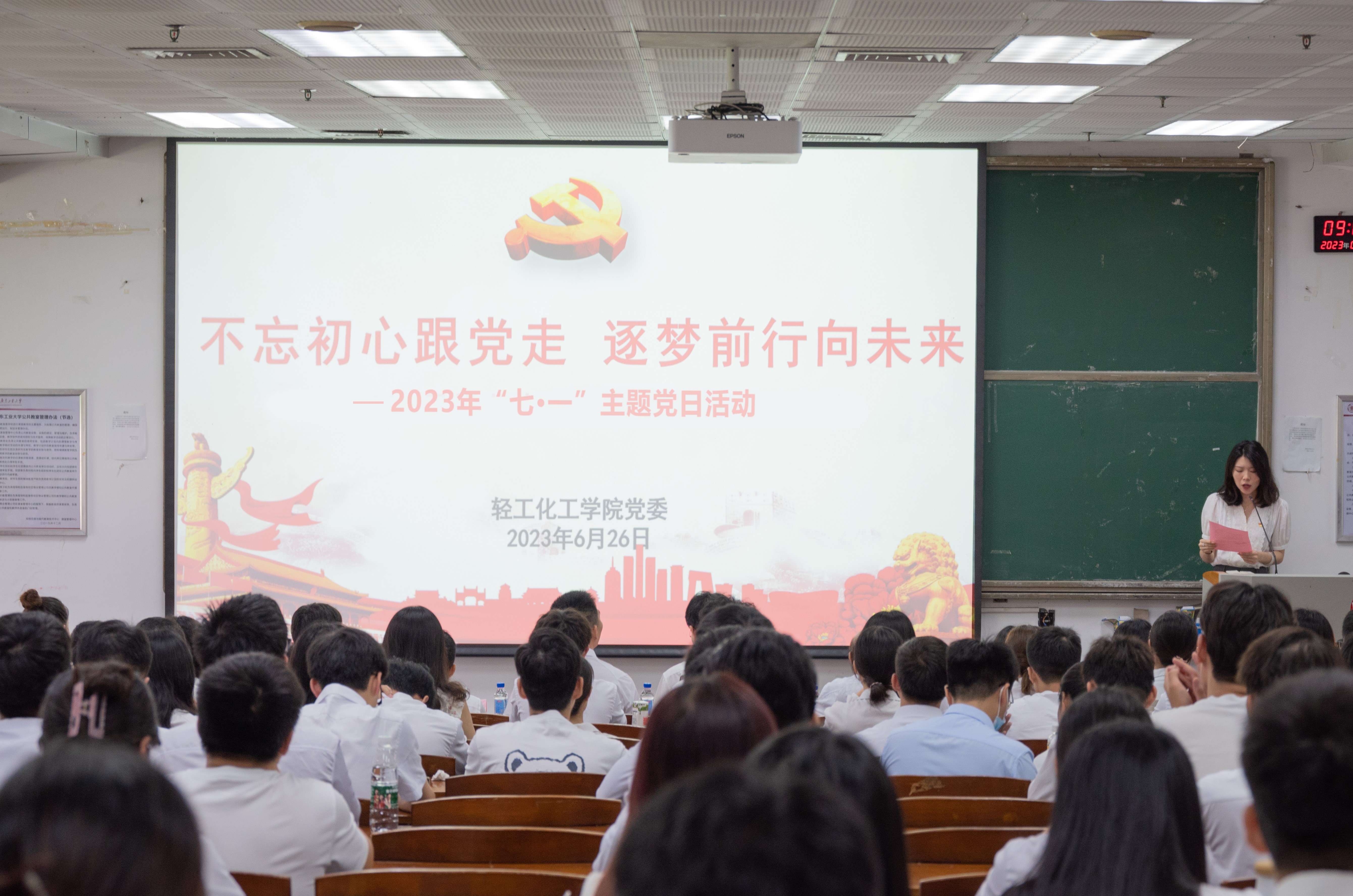 在3号大课室开展2023年“七•一”主题党日活动。学院党委书记周东斌、党委副书记杨刚,离退休第二党支部书记、学院食品系退休党员教师杨云华老师、学院能源化学工程系教师党员、国家高层次青年人才林展教授,学生党支部书记以及学院新发展学生党员和毕业生党员参加活动。