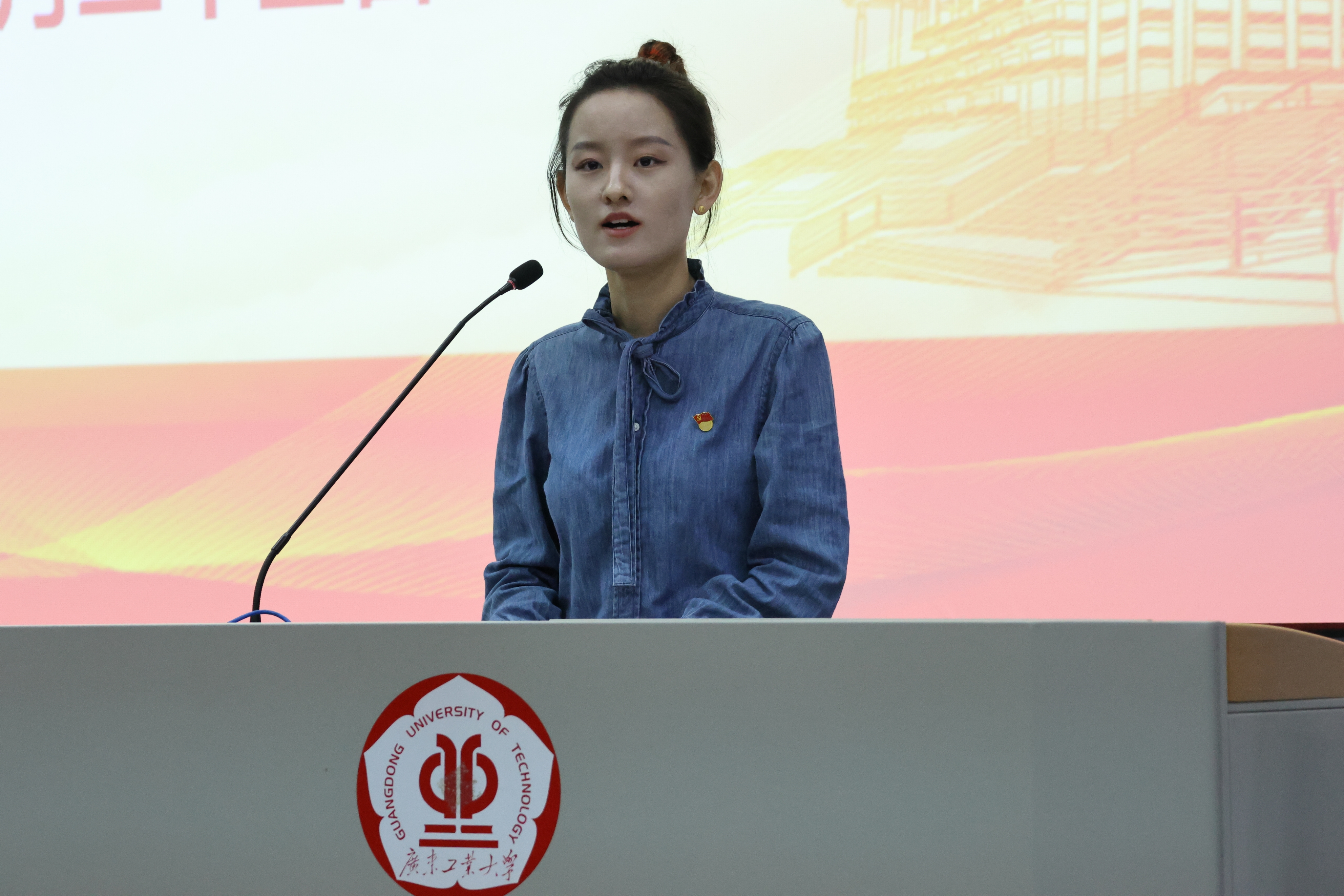 “我们以青春与党同心同行”——来自应用化学专业第一党支部的周涌兴首先播放登上了CCTV-4国家记忆栏目播出的《水润香江》纪录片片段,向师弟师妹们讲述“要高山低头,令河水倒流”的东深精神;其次,通过分享“七一勋章”获得者陈红军、柴云振、黄文秀的事迹,讲述在强国复兴的道路上,党员的身影从未缺席;最后,他结合自身作为党支部副书记、院学生会主席团成员、班级团支书等实践经历,号召师弟师妹们:“他们信仰的理想正在实现,他们开创的事业正在继续,他们书写的历史必将由我们继续书写下去!我是共产党员,必将以青春与党同心同行!”
