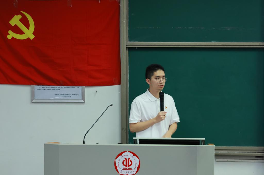 在活动中,三位优秀学生党员代表分别从社会实践、榜样引领、征兵入伍和科技报国等角度,分享了他们对新时代青年目标的认识与看法,充分展示了先锋模范的带头作用。