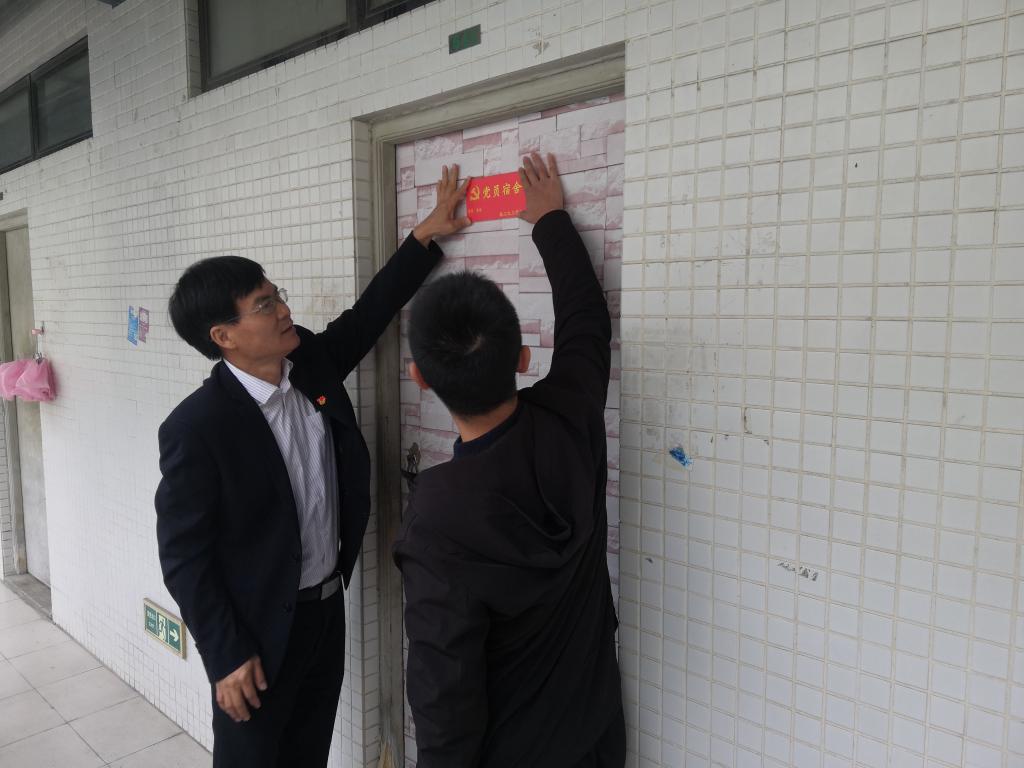 学院领导与学生党员一起在所住宿舍贴上“党员宿舍”,并指出党员宿舍进行挂牌仪式,是一种亮身份的体现。希望学生党员要以此为契机,时刻谨记自己的党员身份,要更加严于律己、以身作则,发挥党员的先锋示范作用,带动和影响身边的同学,共同建设文明宿舍。