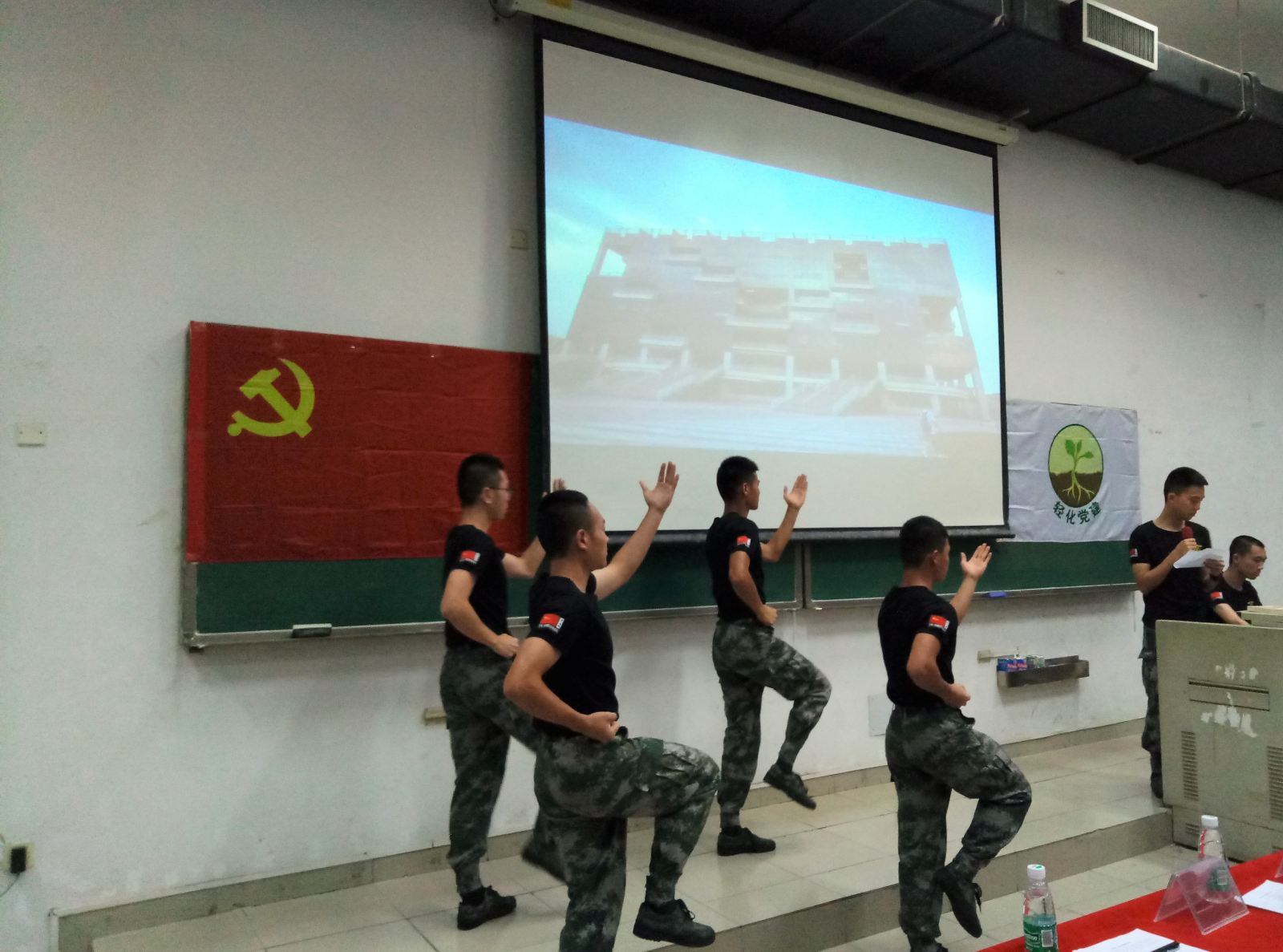 第二环节为支部的展示表演,内容与形式丰富多样,涵盖合唱、朗诵、情景剧等等,同学们精心准备的表演节目将本次活动推向高潮,更赢得现场观众一阵阵热烈的掌声,其中国防生党支部演绎的小品《小刚成长记》,描述一个原来沉迷网络游戏,历经成长、最终蜕变成优秀国防生党员的故事,小品精妙地融合了双截棍表演,获得才艺展示环节第一名。