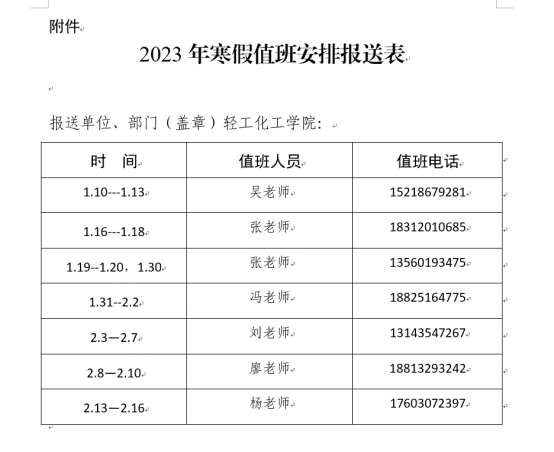 具体值班老师安排请看下表: