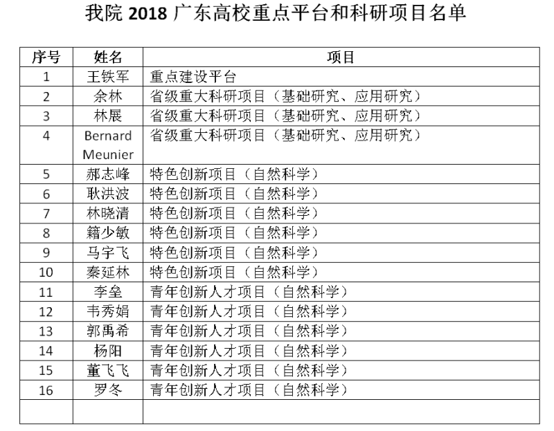 公正、科学、合理地推荐申报2018广东高校重点平台和科研项目。经过专家的评审,学院党政联席会评议通过,拟向校推荐以下重点建设平台和科研项目,现将名单公示如下: