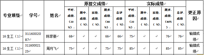 备注:公示期内,如对上述成绩变更有异议,请与学院资料室廖老师联系 (电话:39322090,地址:工四-202-1)