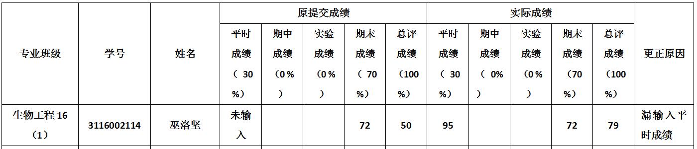 备注:公示期内,如对上述成绩变更有异议,请与学院教务办联系(电话:39322203,地址:工4-201-3)