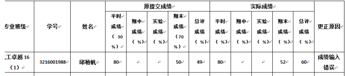 备注:公示期内,如对上述成绩变更有异议,请与学院教务办联系(电话:39322203,地址:工4-202-3