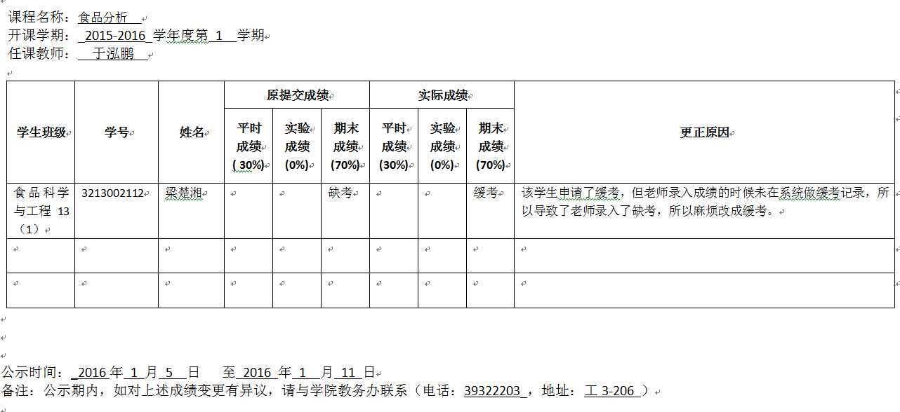 学生成绩变更公示
