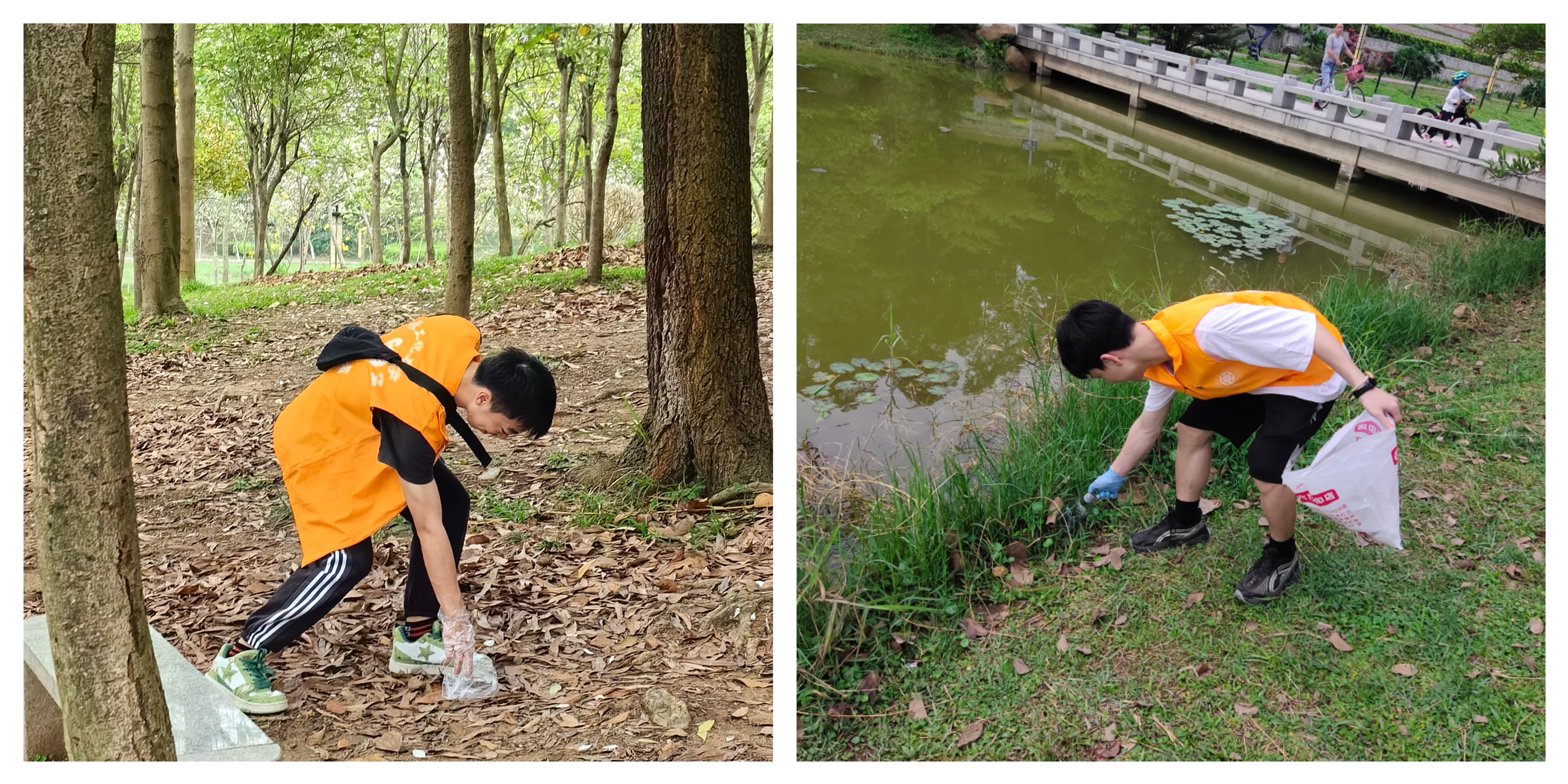 参加一次志愿服务活动践行初心。为加强对党员的奉献精神和服务意识的培养,发挥党员的先锋模范带头作用,支部近日也组织了一次进行大学城中心湖公园志愿清洁活动,对中心湖公园进行垃圾清理。此次志愿服务活动,不仅增强了党员绿色、循环、低碳的环保意识,协助打造清洁、美丽的生态环境,助力绿美广东建设,同时,也让各位学生党员充分地意识到,作为新时代的青年党员要时刻秉持全心全意为人民服务的宗旨,将无私奉献、互帮互助的志愿精神践行在工作、学习和生活当中,诚心诚意办实事,坚持不懈做好事。