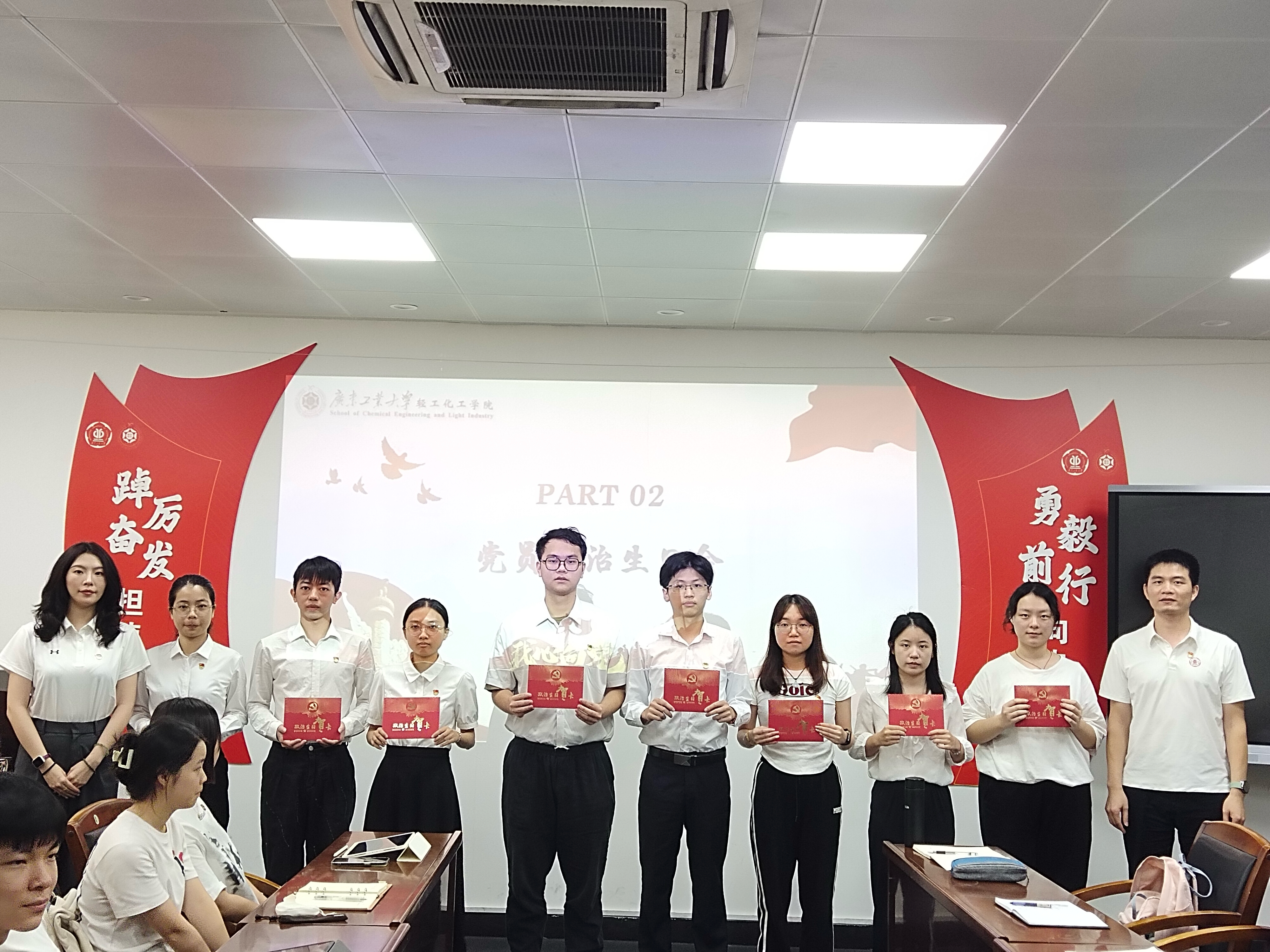 化学工程与工艺专业第二党支部于6月19日在工四202会议室开展第二期“六个一”主题党日活动——一堂微党课、一场‘政治生日’仪式、一次诗词朗诵、一场榜样学习、一次校史馆参观、一次社会志愿服务。学院党委副书记杨刚老师、支部书记徐丹宁老师以及党支部成员参加本次活动。