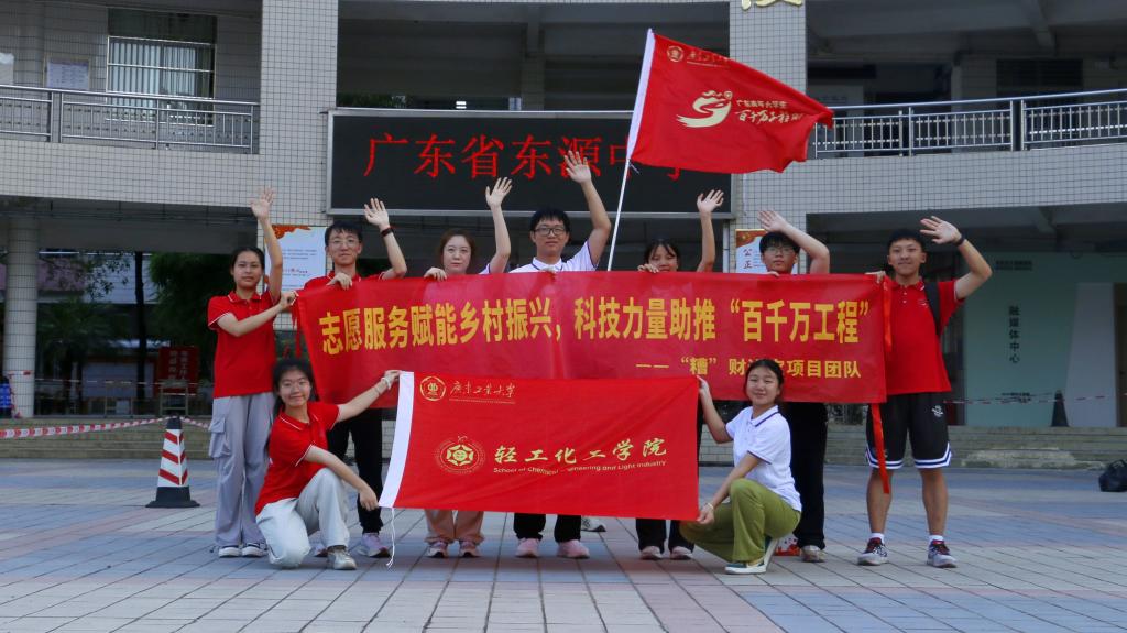 守正创新,广工青年以“活肽”保护激发非遗活力。“百千万工程”突击队优秀示范项目“糟”财进宝团队于7月7日-7月11日,赴河源市东源县结对调研。他们以东源非遗糯米酒文化及酒糟利用科普宣传为核心,打造“两带两帮、两促两提”的“非遗+”志愿服务模式,助力客家糯米酒制作技艺“焕新”发展——“非遗+产业”,团队走访多家酒厂,普及高值化利用技术,促进当地农户掌握先进技能,提升科学素质;“非遗+社区”,团队通过摆摊宣讲和入户宣传,让非遗文化和绿色理念有机融入乡村生活,为乡村文化和生态振兴注入源头活水;“非遗+课堂”,团队走进东源中学,以生动课程和互动体验向高二学生讲解客家糯米酒非遗技艺和团队科研成果,向青年群体传递新发展理念。