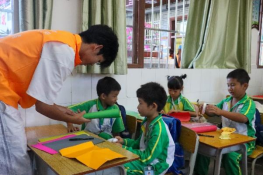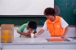 课程后半段,为了加深学生对科普内容的理解,志愿者讲师设计了精彩的实践环节——一至二年级的学生进行了手工火炬的制作,学生利用彩纸、剪刀、胶水等工具做出特色的火炬,加深学生对奥运精神和中国传统文化的理解;三至六年级的学生自制吸尘器,使用塑料瓶、电机、风扇叶片、电池盒等常见材料组装吸尘器,充分发挥创造力和动手能力,加深对伯努利原理的理解。