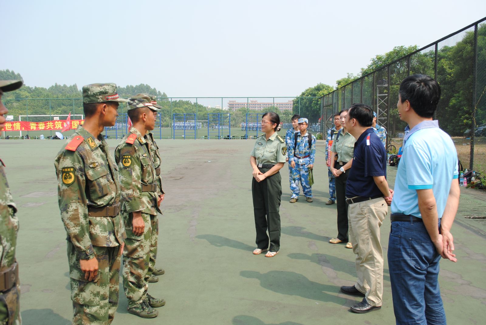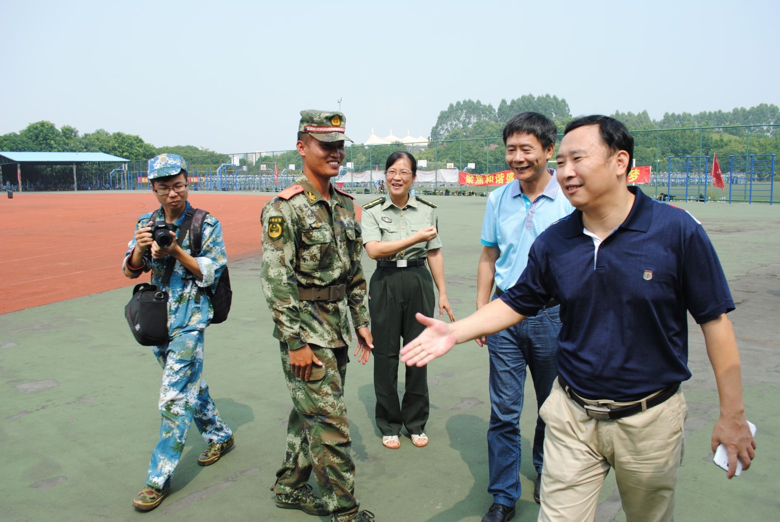 秋色初现,晴空万里 。9月25日上午,学院领导林军书记、余林院长、英健文副书记与辅导员冯树清老师、毛元渊老师来到轻化学院新生——一团三营的训练场地,慰问承训教官和参训学生。