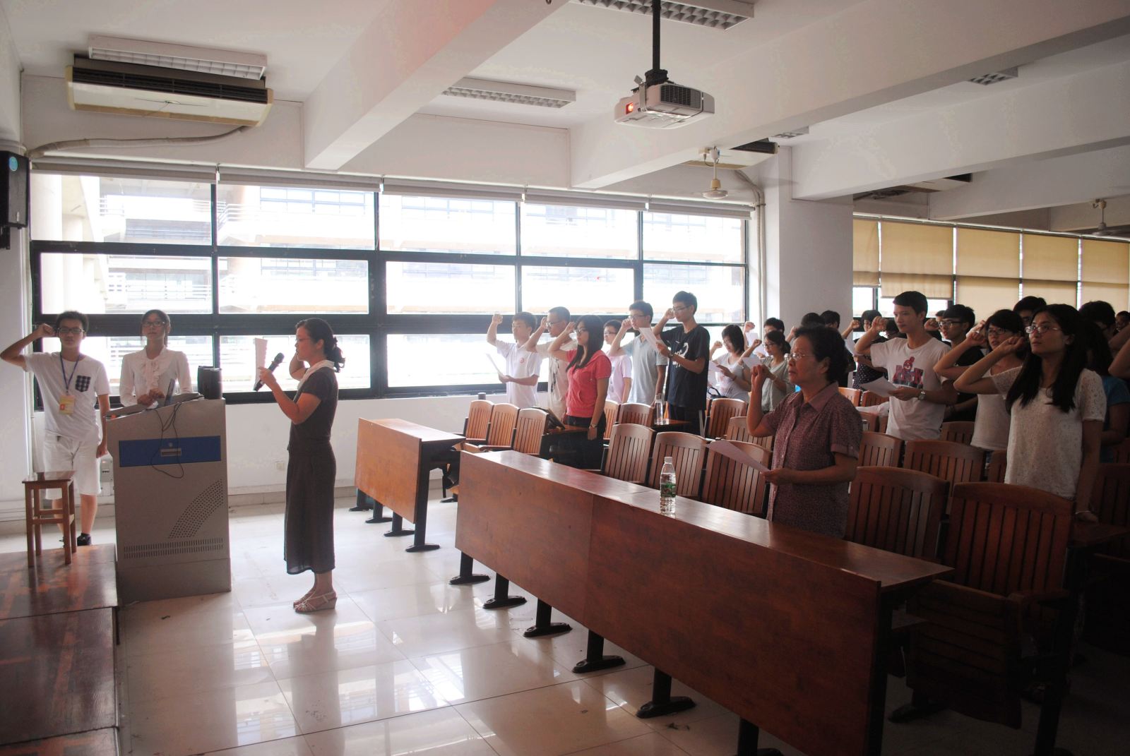 为激发学生党员的荣誉感、责任感和使命感,坚定党员理想信念,牢固树立宗旨意识,拷贝漫画 于6月25日下午在工三208举办新党员宣誓大会。拷贝漫画 特邀党建组织员黎碧娜老师、学院党委英健文副书记、党建指导老师魏源,以及150余名新党员出席本次大会。