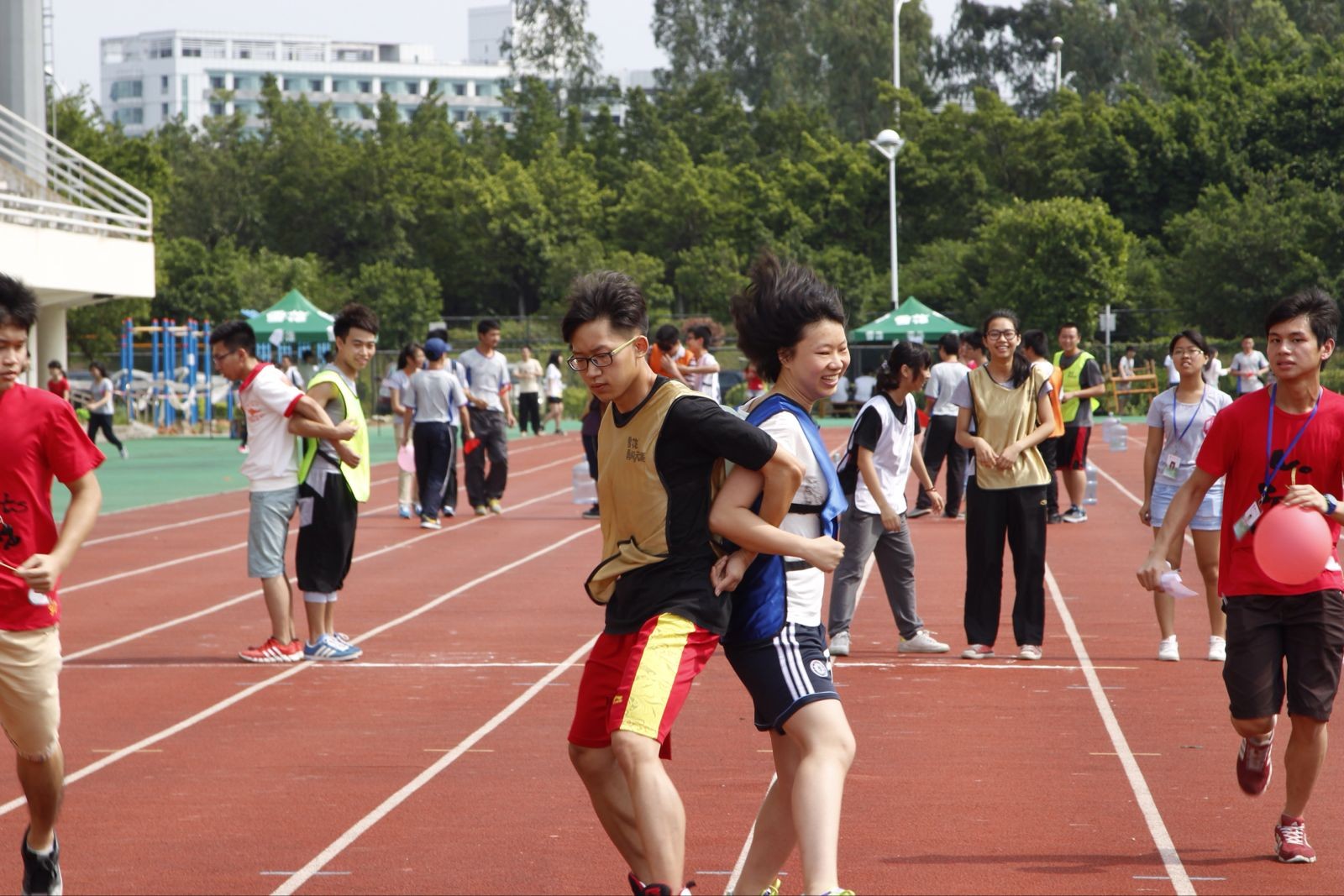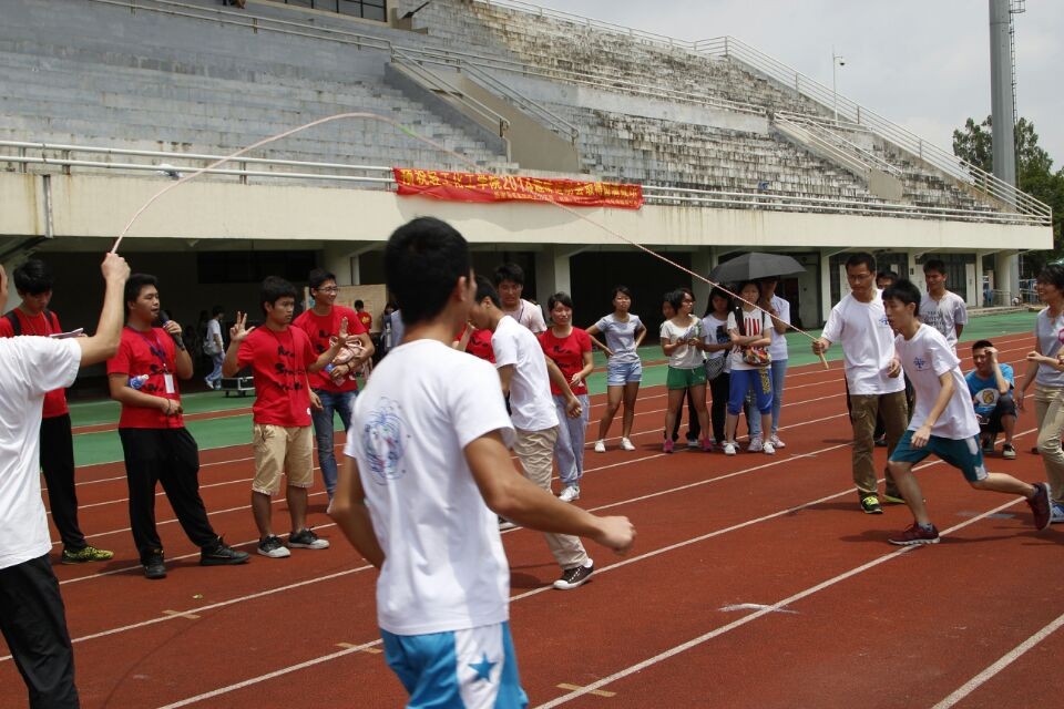 于5月17日在大学城校园田径场举办了以“走下网络、走出宿舍、走向操场——运动的青春最精彩”为主题的2014年学生趣味运动会。本次活动进一步明确思路,整合资源,通过开展以宿舍、班级等为参赛单位的群众性课外体育活动,把体育锻炼与班风建设紧密结合;通过趣味性和竞技性相结合的运动项目,调动学生运动的积极性和自觉性;通过体育运动理念的线上传递,树立同学们强健体魄、健康第一的意识。