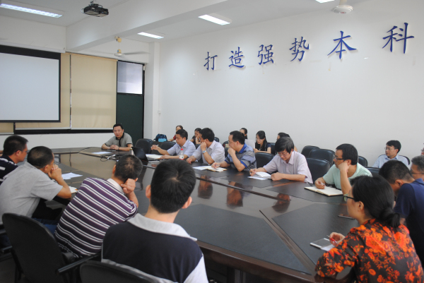 2015年6月9日中午,学院汇集各科研团队负责人、博士生导师、校“百人计划”“青年百人计划”引进的人才、各系(中心)主任书记等召开高水平大学建设动员大会。发展规划处处长余林教授、环境学院院长宁寻安教授、副院长林亲铁教授、“国家杰青”安太诚教授、刘国光教授等参加会议。