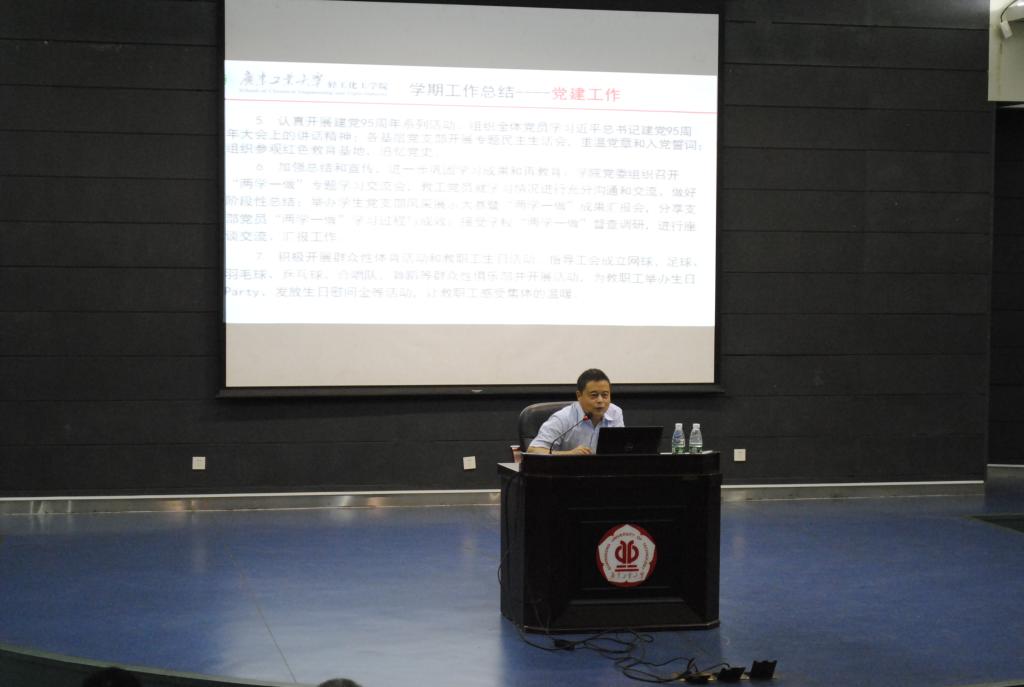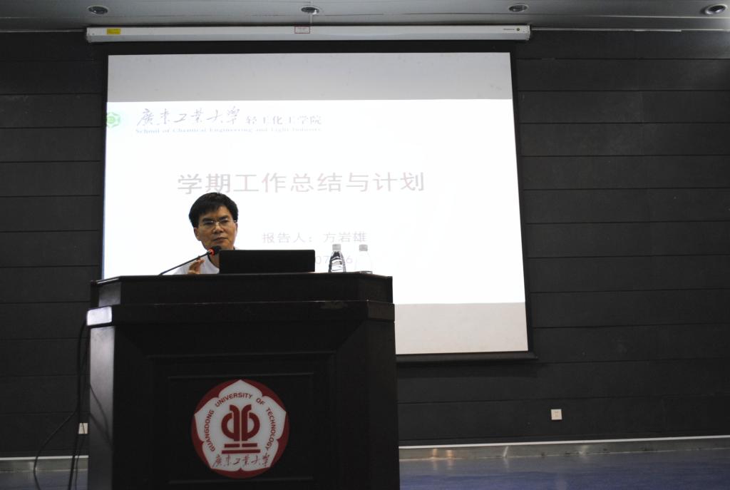 接着,学院院长方岩雄代表班子就本学期学院的有关工作进行总结,主要包括党建工作、人才引进与培养、本科教学、科研工作、研究生工作及学科评估、实验室建设、经费预算与支出情况等方面,并对下学期工作计划作了介绍,号召全院教职工群策群力,积极响应高水平大学建设。