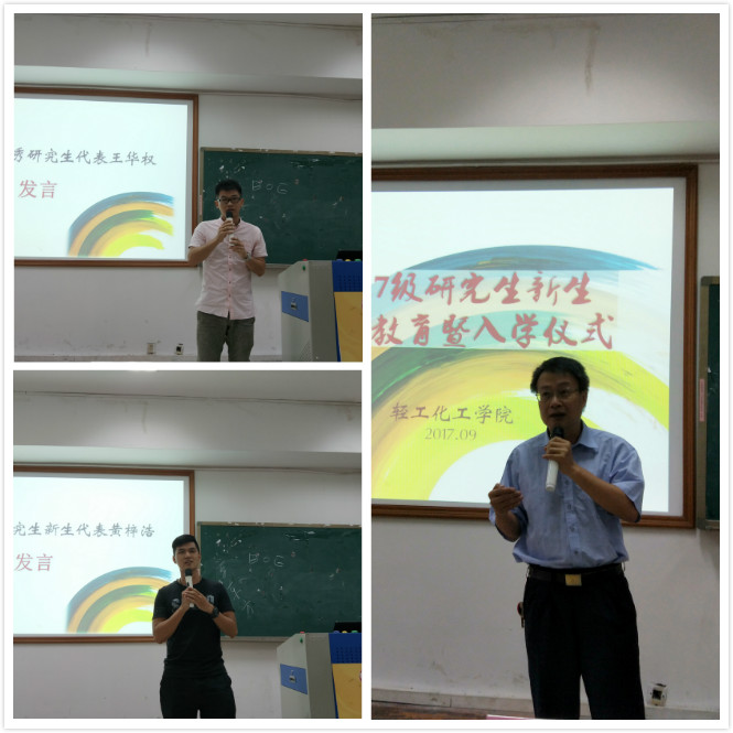 导师代表潘湛昌教授从自身经历体会出发,阐明建立良好的师生关系对科研成功的重要性。优秀研究生代表王华权和新生代表黄梓浩也相继上台发言。王华权同学鼓励大家培养良好的科研兴趣和科研习惯;黄梓浩同学则表达了自己对研究生生活的憧憬和规划。
