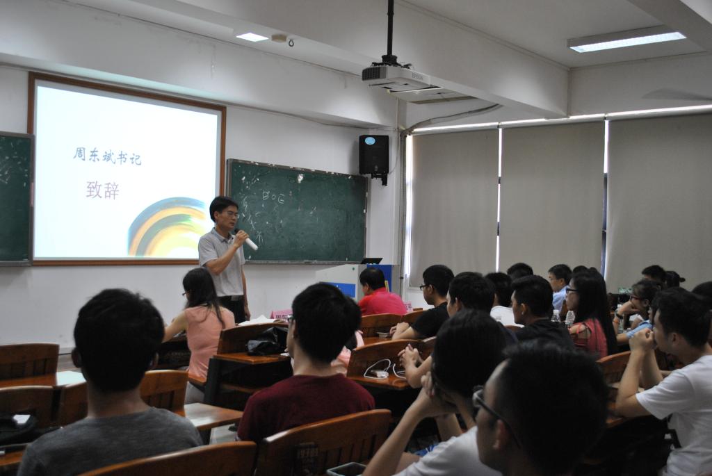 大会首先由学院党委周东斌书记致辞。他代表学院对同学们的到来表示热烈欢迎,介绍了学校在高水平大学建设下取得的丰硕成果,希望新生们在“德、能、勤”方面下功夫,把自己培养成为一名德才兼备、专业过硬、作风优良的研究生。