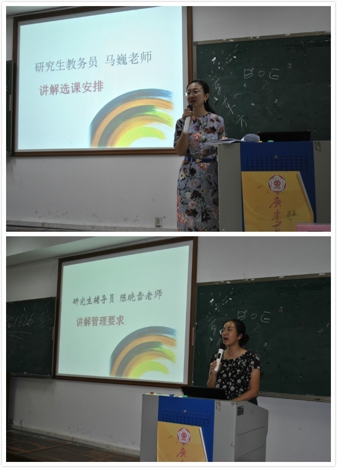 最后,教务员马巍老师和辅导员陈晓雪老师讲解研究生培养、选课等相关制度及管理要求。在陈晓雪老师的主持下,17级新生推选产生了班级班长、党支书及团支书。