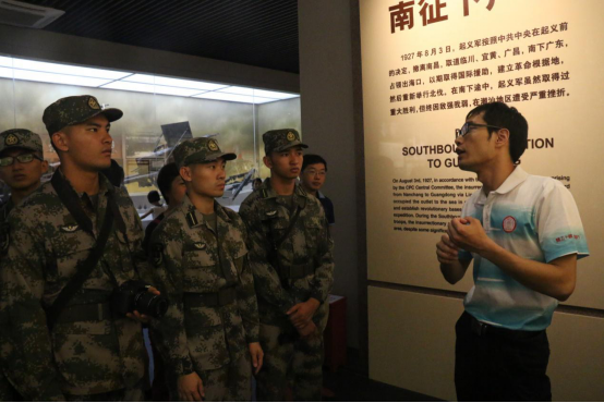 经过一整夜的火车行程,国防生队员来到了英雄城南昌。南昌八一起义纪念馆成立于1956年,1959101日正式对外开放,1961年被国务院为全国首批重点文物保护单位(所辖五处革命旧址总指挥部旧址、贺龙指挥部旧址、叶挺指挥部旧址朱德军官教育团旧址和朱德旧居)在馆内,国防生队员按参观线路认真参观学习,不时在史料和文物前驻足观看讨论。冯树清老师也结合自身学习体会为国防生讲解南昌起义的艰难过程、部队转战线路及起义对中国革命和建立人民军队的历史意义,国防生们纷纷感慨先辈开展革命的艰难,进一步加深了对南昌起义的认识。