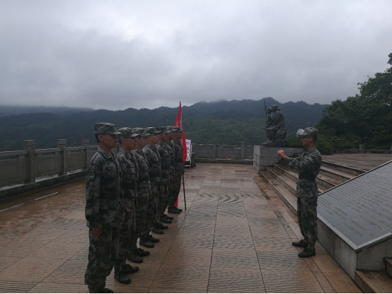 随后队员们爬上纪念馆旁边长长的石阶,来到三湾改编纪念碑前面。在纪念碑前国防生面对着鲜红的党旗举行庄严的入伍宣誓,挺拔的身姿,铮铮的誓言,充分展现出国防生矢志从军报国决心,为党和人民奉献一切的爱国情怀和意志。