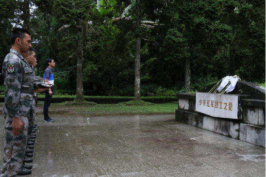 小井红军烈士之墓又名红军伤病员殉难处,距小井红军医院不到百米是那群宁死也不透露红军转移方向的一百多名红军伤病员及医护人员的长眠之所。毛泽东在烈士纪念碑上题词死难烈士万岁在这里,充满的是信仰的力量,革命先烈们以血荐主义,誓死不屈服于反动派的威逼利诱,这是气壮山河的英雄气概。国防生队员穿着整洁的军装,踏着整齐的步伐,缓缓向墓碑走来,在老师的带领下集体向烈士墓鞠躬、默哀,表达队员对革命烈士的缅怀。之后,国防生队员拜谒了曾志老红军墓,学习一名纯粹共产党人对共产主义的坚定信仰、对革命的无私奉献和为人处世的高风亮节。