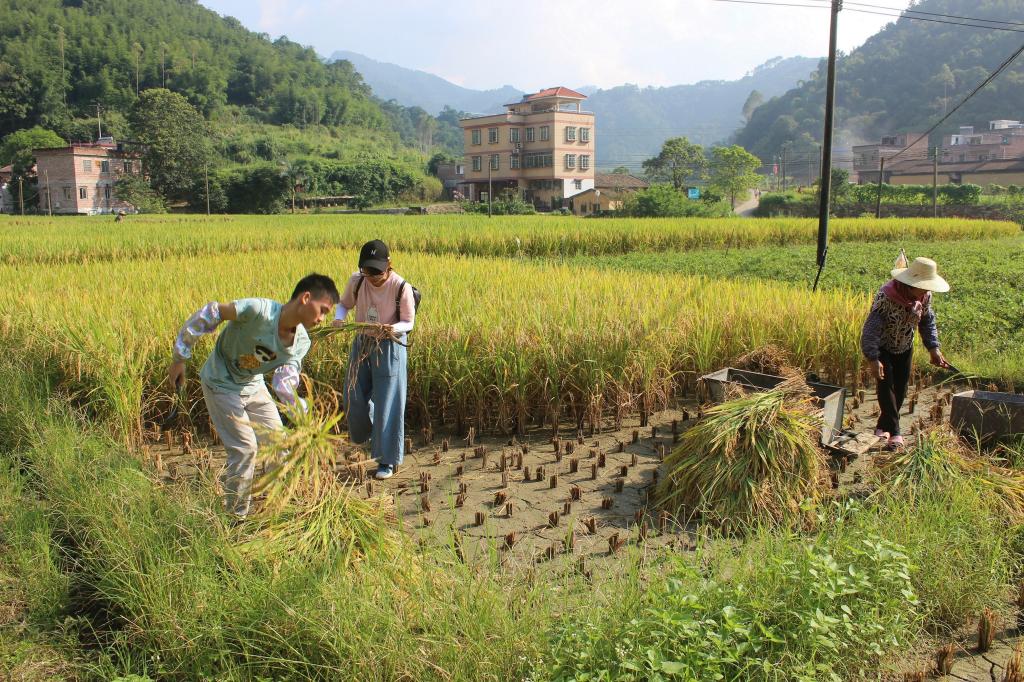 上午,党员队伍分成两组,分别前往大垌村和塘垌村开展志愿服务活动。前往大垌村的队员们来到田间,和村民们一起收割水稻;大家认真负责的工作干劲,得到当地村民的一致赞赏。同时,为了让家长能够专注于忙农活,前往塘垌村的队伍则帮忙照看小朋友,辅导学习和开展趣味活动。