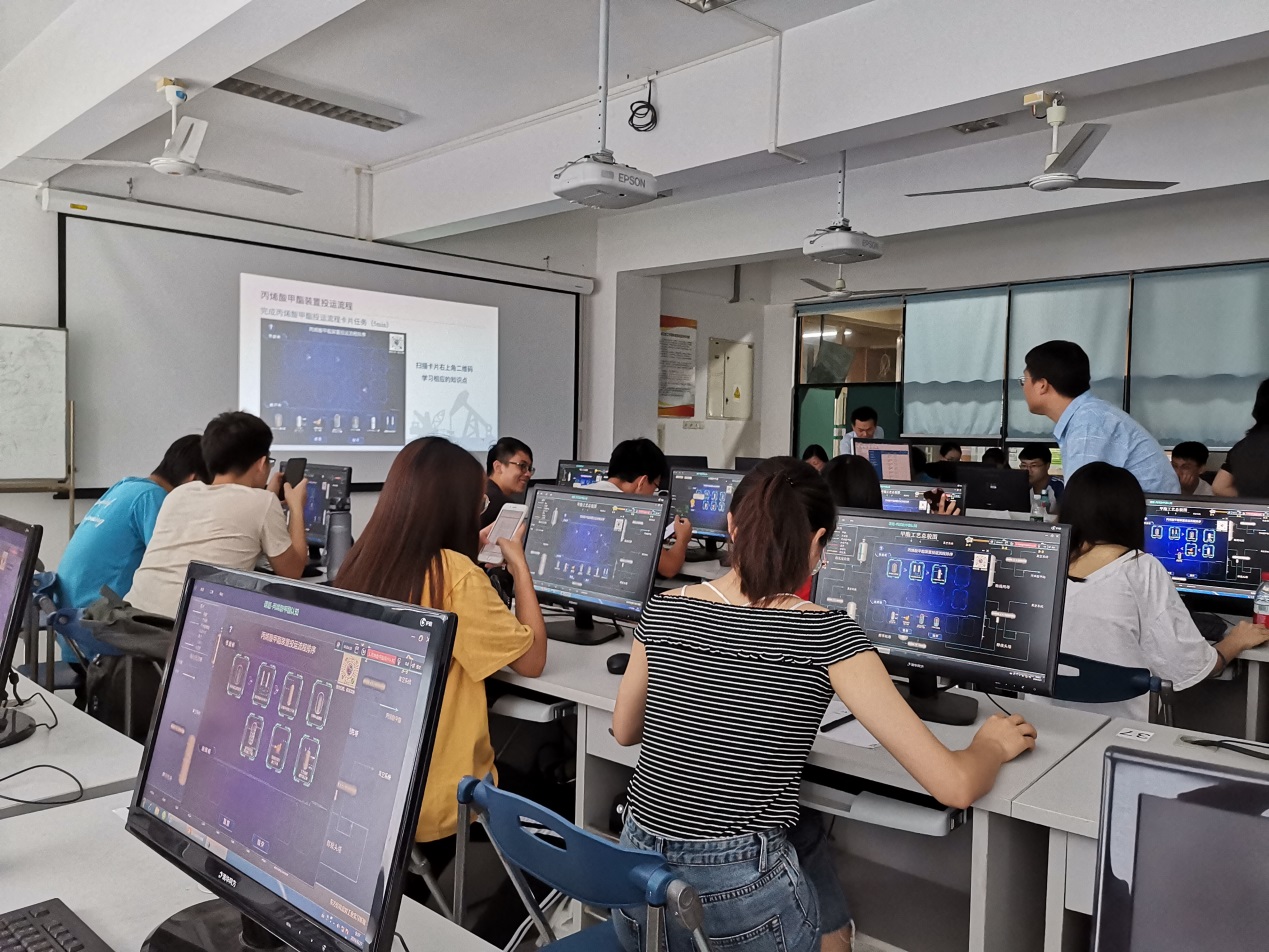 进行示范课交流活动表示热烈欢迎。接着,东方仿真公司的赵埔工程师进行了90分钟的示范课程,内容包含丙烯酸甲酯生产工艺包中的“开车前准备工作”、“酯化反应投运训练”、“萃取回收投运训练”、“精制提纯投运训练”。老师和学生们都积极参与了此次课程,并通过易思云课程进行小测验,了解学生学习情况。示范课结束后,参加的老师都感觉收获很大,表示在今后的教学实践中将融入这次教学研讨活动的心得和成果,不断提升带专业实验和实习的教学能力。