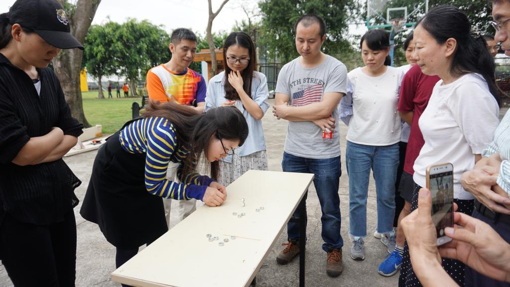 徒步结束后,筹备组老师精心策划了拓展游戏,游戏项目包括乒乓球接力、巧叠螺母、比划猜词等精彩活动,老师们积极参与了各项活动,现场气氛热烈融洽,精彩不断。