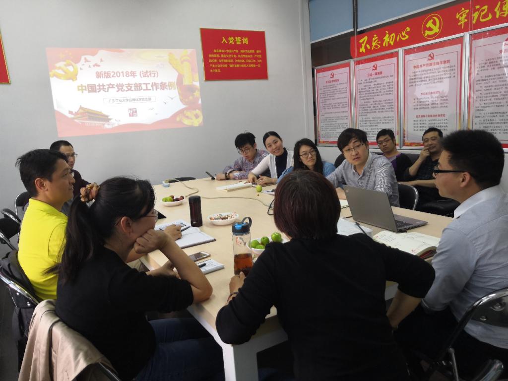随后,由支部书记何军教授带头集中学习了《2018中国共产党支部工作条例(试行)》。《条例》以习近平新时代中国特色社会主义思想为指导,贯彻党章要求,既弘扬“支部建在连上”的光荣传统,又体现基层创造的新做法新经验,对党支部工作做出全面规范,是新时代党支部建设的基本遵循。会上,党支部书记通过认真解读了《条例》的具体内容,希望全体教师党员均能深入理解和领会《条例》的内容和精神,以求加强党支部的标准化、规范化建设,以提高党支部建设质量。大家纷纷表示,支部建设要想取得积极成效,关键在于严格规范抓落实,确保《条例》不折不扣落到实处,才能真正发挥党支部的战斗堡垒作用,打造一支高素质、专业化的基层队伍。