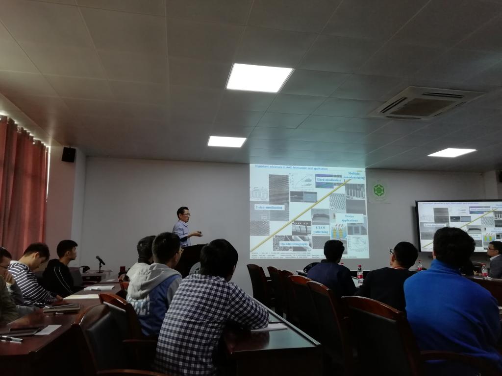 ,并在工学四号馆202作题为“模板法实现功能纳米结构在能量转换和存储器件中的应用”的学术报告。此次轻化名师讲坛由林展教授主持,学院师生踊跃参加,现场学术交流氛围浓厚。
