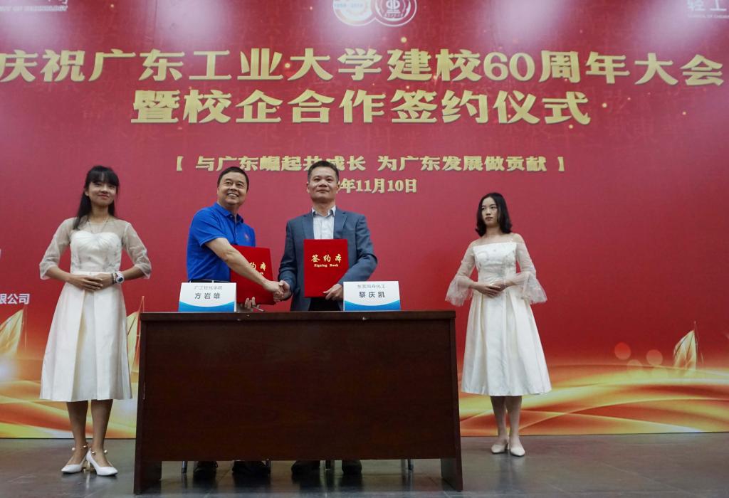 随后,方岩雄院长代表学院与东莞市同舟化工有限公司总经理黎庆恺校友共同签订“同舟化工奖学金”协议书,捐赠50万元,用于鼓励拷贝漫画 学子勤于向学,报效祖国,回馈社会。方岩雄院长还代表拷贝漫画 和江门市皇宙实业有限公司、广州顺力聚氨酯科技有限公司、江西真美生物科技有限公司、上海凯茵化工有限公司签署了“轻化学院校外实践基地”。