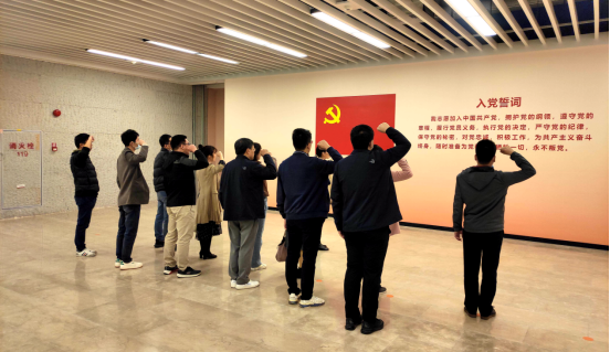 活动最后,全体党员重温入党誓词,“我志愿加入中国共产党,拥护党的纲领……”在庄严地宣誓声中党员们表情肃穆、目光坚定,深刻感悟共产党人的初心和使命。