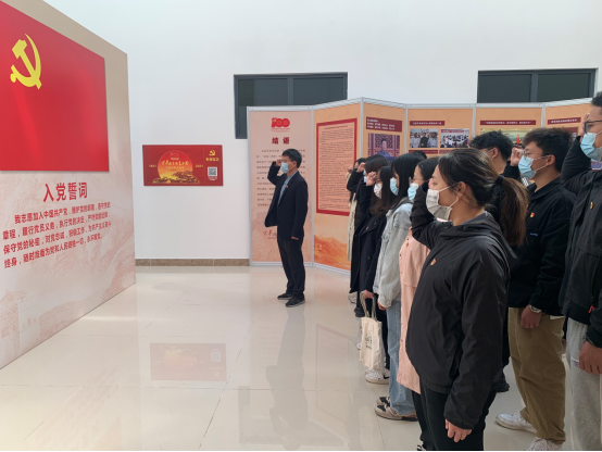 最后,周东斌带领大家面向党旗,重温了入党誓词。在一句句铿锵有力的誓词中,师生党员们进一步感受自己的入党初心,用自身的行动诠释党员的责任担当,为学校发展、社会建设和祖国的繁荣富强添砖加瓦。