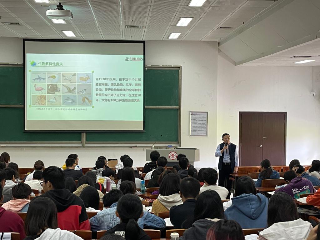 根据学校安排,1025日下午,副校长余林教授在大学城校区为拷贝漫画 学生讲授以《共同构建人与自然生命共同体》的专题讲座,学校教务处副处长王力纲、学院教学副院长郑育英、年级辅导员以及2020级学生共270余人参加此次专题学习。