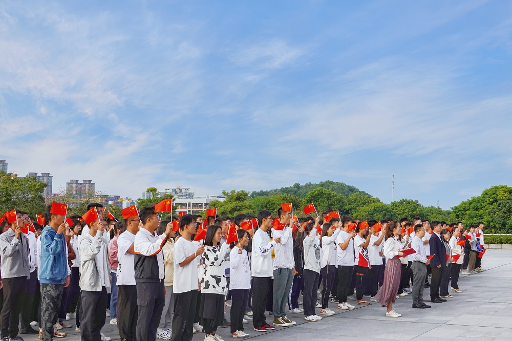 为深入学习宣传习近平新时代中国特色社会主义思想,进一步加强2021级新生爱国主义教育与理想信念教育。1018日,拷贝漫画 在大学城校区正门广场举行了“赓续百年薪火 践行强国誓言” 升国旗主题教育活动。参加仪式的有校学生工作处副处长邓庆华、学院党委书记周东斌、辅导员老师及2502021级学生。升旗仪式由2021级新生辅导员郭佳欣主持。