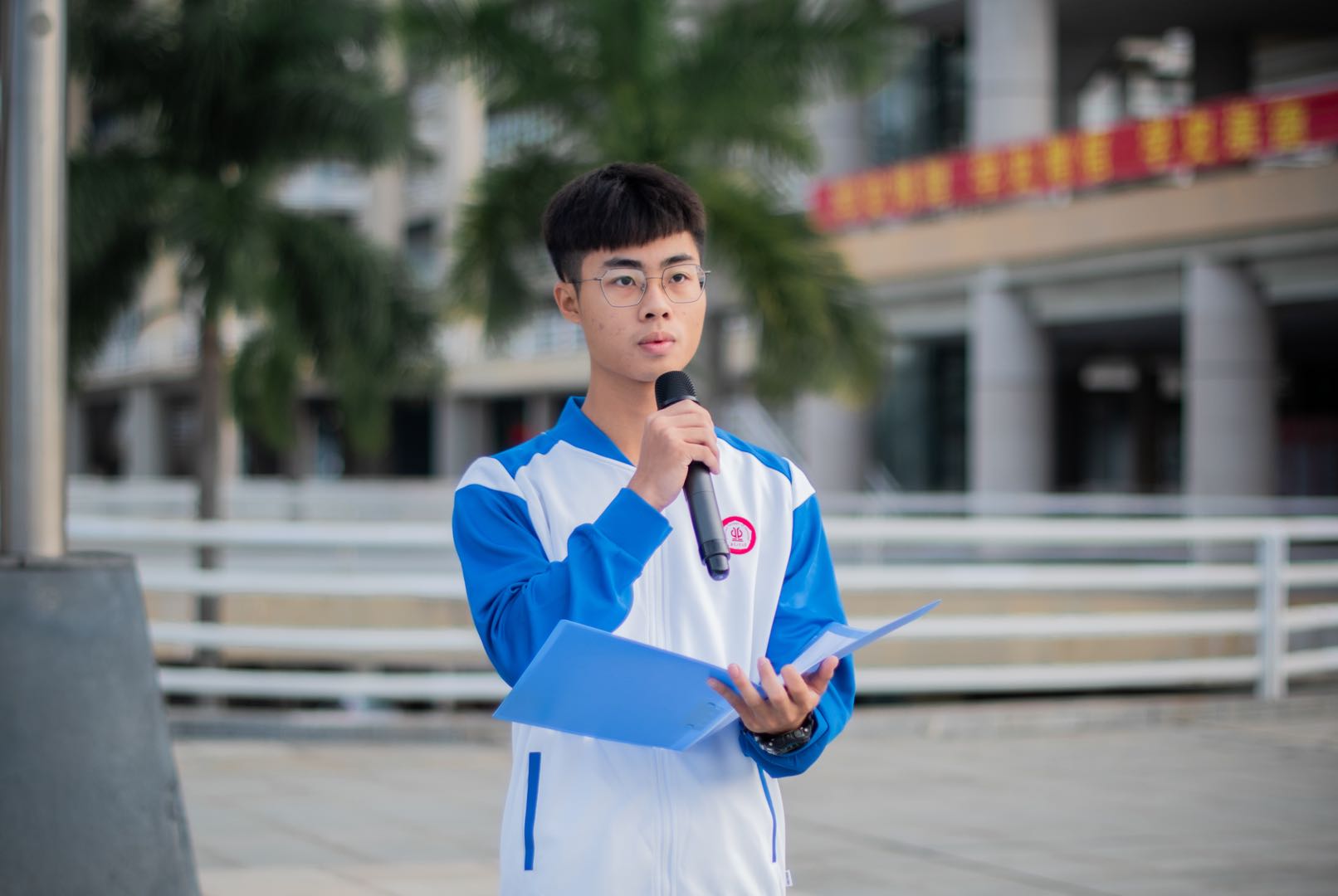 在国旗下,2021级应用化学3班邓冠东同学作为学生代表发言,鼓舞同学们抓住青春年华,坚定“读万卷书”的志向,葆有“行万里路”的气魄,把学习作为首要任务,自觉担负起时代赋予的使命和责任。