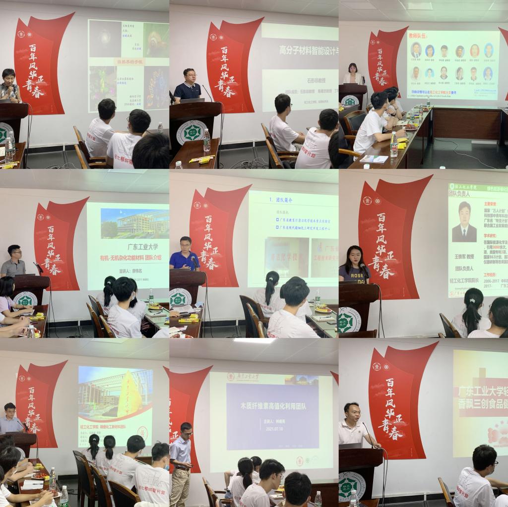 7月10日下午7月11日上午,学院17个不同团队的导师分两个场次为营员们分享介绍了各个科研团队的基本情况。他们分别介绍了木质纤维素高值化利用、清洁化学技术、绿色化学过程、绿色能源催化、精细化工新材料、有机-无机杂化功能材料、有机光电材料与功能高分子、无机光电功能材料、电化学纳米能源、精细有机合成与特种功能材料、高分子材料智能设计与制造、先进储能材料与器件、新药开发及绿色催化、应用物理化学、食品方向及加工技术、食品营养与健康、电活性生物材料等研究方向,近年取得的科研成果、今后的发展目标以及对研究生的培养方案。会后营员们认为这个环节是增进营员与团队的最佳窗口能让自身更加明确了未来选择科研道路的方向。