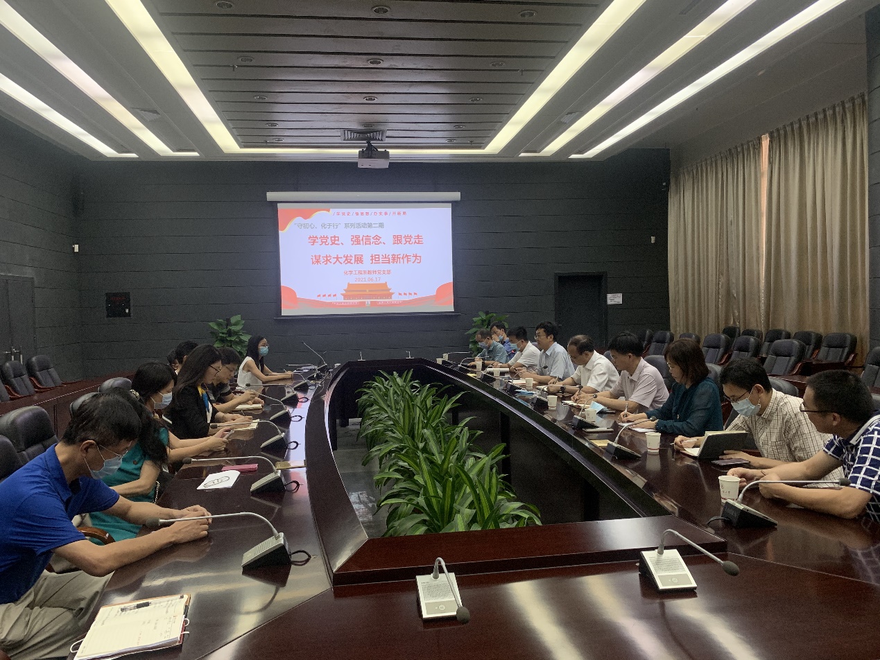 落其实者思其树,饮其流者怀其源,中国共产党走过了一百年风云激荡,一百年沧海桑田。初心依旧,砥砺前行。学习党的百年奋斗史,可从党的奋斗历程和伟大成就鼓舞斗志、明确方向;从英雄事迹激发源于内心深处的信仰和精神力量;用党的光荣传统和优良作风坚定信念、凝聚力量;用党的实践创造和历史经验启迪智慧、砥砺品格。6月17日上午,化工系教工党支部在学校会议室举办“学党史、强信念、跟党走”为主题的组织生活会,支部党员、学校校长邱学青同志讲授了“学党史、强信念、跟党走——谋求大发展,担当新作为”为主题的党课。化工系全体党员、院党委书记参加会议,会议由党支部书记、院长王铁军同志主持。