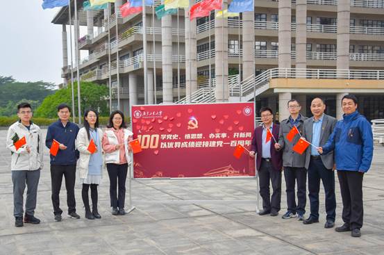 2021年是中国共产党的百年华诞,为深入学习贯彻落实习近平总书记党史学习动员大会的重要讲话精神,扎实有效开展党史学习教育。3月22日,在轻化学院党委的领导组织下,应用化学系党支部与本科生党支部联合共建在大学城校区正门广场举行“红旗飘扬颂党情,我心向党迎百年”升国旗主题教育活动。参加仪式的包括学院党委书记周东斌、院长王铁军、学生工作处何祉源老师、应用化学系教师党员、学生党员等200余名师生。