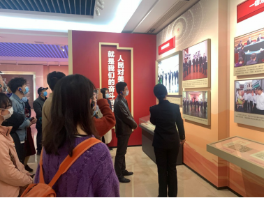 学习活动开始后,在基地解说工作人员的带领下,全体人员整齐列队来到一楼序厅,迎面而来是中共一大以及嘉兴南湖的剪影,两面矗立的浮雕墙分别刻画古代岭南廉吏和当代清廉典范,正上方吊着的特大利刃型水晶灯象征正风反腐,利剑高悬。在王铁军书记的带领下,全体党员面对厅正中悬挂鲜红的党旗,重温了入党誓词,回首入党初心,勇担时代使命。随后在解说员的带领下,学员依序参观了一至四楼的各个展厅,展厅通过综合运用图文解说、LED视频、环幕投影、真实场景以及光声电等科技手段呈现了反腐倡廉重要成果,并从不同角度展示了党执政为民的初衷以及党风廉政建设的新理念、新思路以及新成效。激昂澎湃的全民万众一心战“疫”就是党把“人民对美好生活的向往就是我们的奋斗目标”扛在肩上的最好行动。“南粤清风”、“廉洁纪律”这两部分重点剖析了我省近年来查处的重大违法违纪案件,有落马贪官的忏悔之音,贪腐官员的狱中生活,一个个曾经的“风云人物”沦为痛哭流涕的阶下囚,给参观者带来了心灵的震撼及深省;在“天眼”展厅里,四周密布着雪亮的群众“眼睛”,注视着参观者,警示大家切勿迷失在“贪欲之心”中,“莫伸手,伸手必被捉”,警醒着在场的每一位党员干部要牢记党员身份和遵守党纪国法,保持高度清醒和自律,不断加强自身修养,严格执行中央八项规定精神,履行党员职责,筑牢思想道德和党纪国法两道拒腐防变的防线。