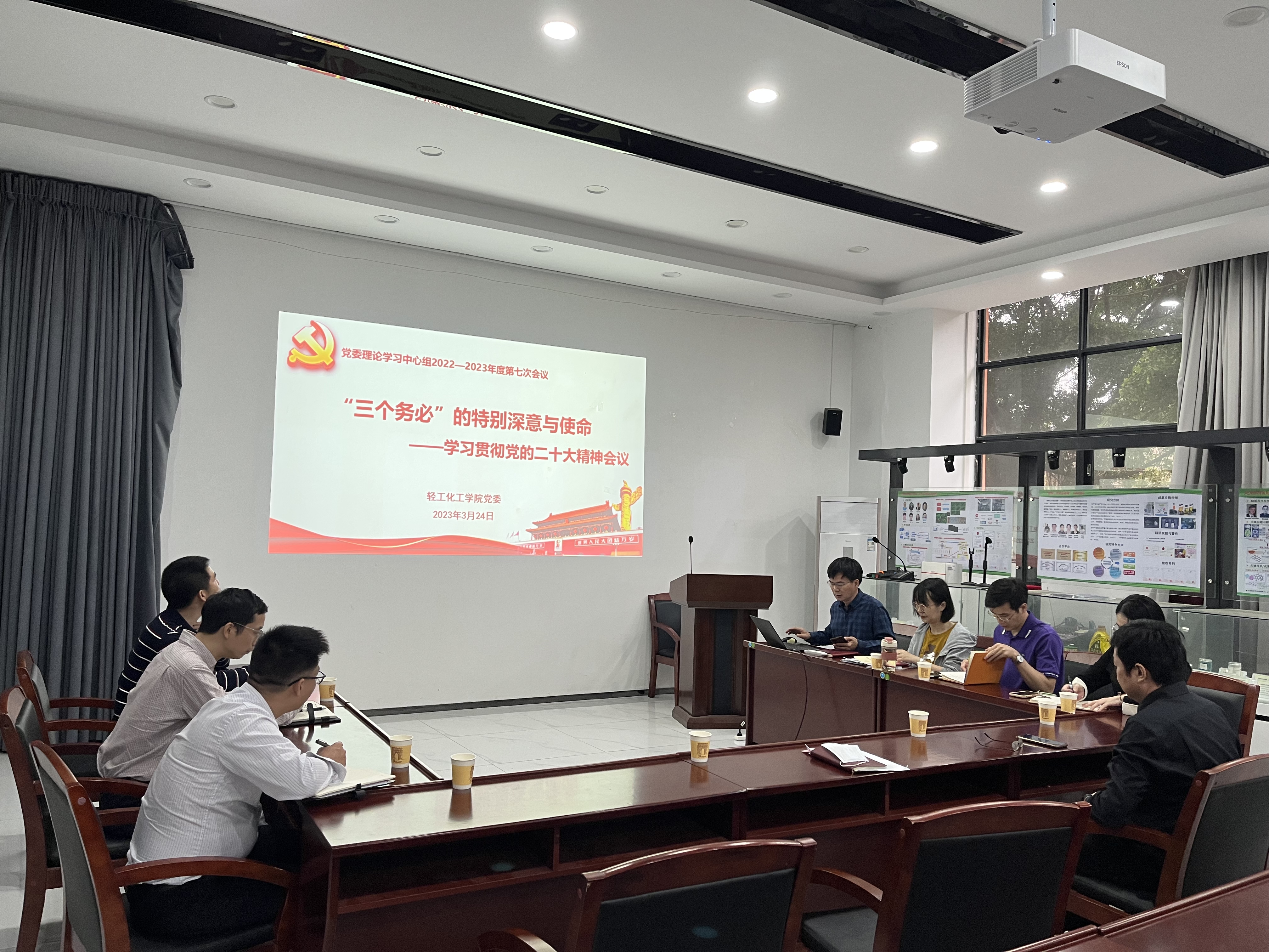 3月24日上午,轻工化工学院党委在工学四号馆102会议室召开理论学习中心组学习会议,集中学习习近平总书记关于“三个务必”的重要论断。学院党委书记周东斌主持会议,学院党委理论学习中心组成员参加会议。