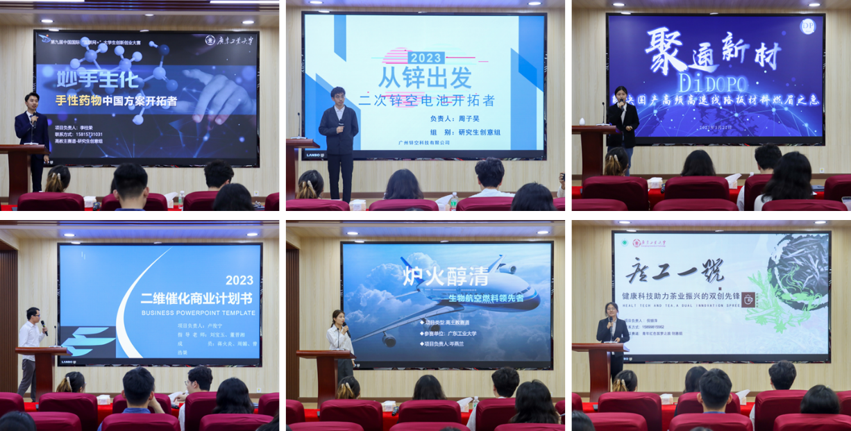 综合评委的现场打分,最终,妙手生“化”项目获得金奖;聚通新材项目、从锌出发项目获得银奖;炉火醇清项目、广工1号项目、二维催化项目荣获铜奖。团队自信从容的展示和流利大方的对答充分展现了工大青年学子在“双创”道路上敢为人先、勇立潮头的优秀精神面貌。