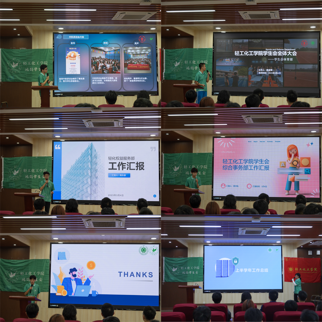 会上,学生会各部门依次汇报了上一学期的工作开展情况和本学期的工作计划。综合事务部、权益服务部、体育部、文娱部、宣传联络部和学业发展部的汇报内容丰富,具体细致,让在场的班级代表深入了解了学生会在各方面的工作情况。