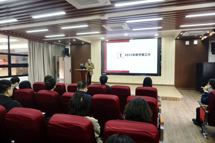 在工学三号馆208召开新学期工作会议,传达学校主要领导关于学校落实广东省高质量发展大会精神的指示和要求,落实部署学院新学期工作。学院全体教职工参加了本次会议。