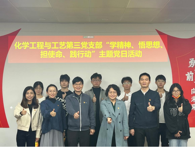 悟思想,彰显时代担当。支部党员刘阳、陈泽童等名同志进行《青年眼中的“中国式现代化”》主题学习分享,师生党员结合自身学习工作实际发表学习贯彻党的二十大精神感想。学生代表袁皓天表示,要学会分辨“精神食粮”与“毒鸡汤”,建立自己的舆论筛滤体系,做勤于思考新时代青年;要充分运用所学专业知识,勤奋学习、刻苦科研,在化学领域中发光发热,不断尝试突破技术封锁,做勇于创新的新时代青年。教师代表李舒指出,作为接触大学生思想最深,交往最密切的一线思想政治教师,要不忘育人初心,牢记服务学生健康成长成才的使命,努力做学生锤炼品格、学习知识、创新思维、奉献祖国的引路人。