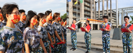 紧接着,全场同学合唱歌曲《国家》,伴随歌声表演手势舞歌声豪迈,饱含着浓浓的爱国情绪;指尖跳动,蕴含着蓬勃的青春力量。在鲜艳的五星红旗下,同学们摆出爱心阵型,表达对党的忠诚、对国家的热爱之情。