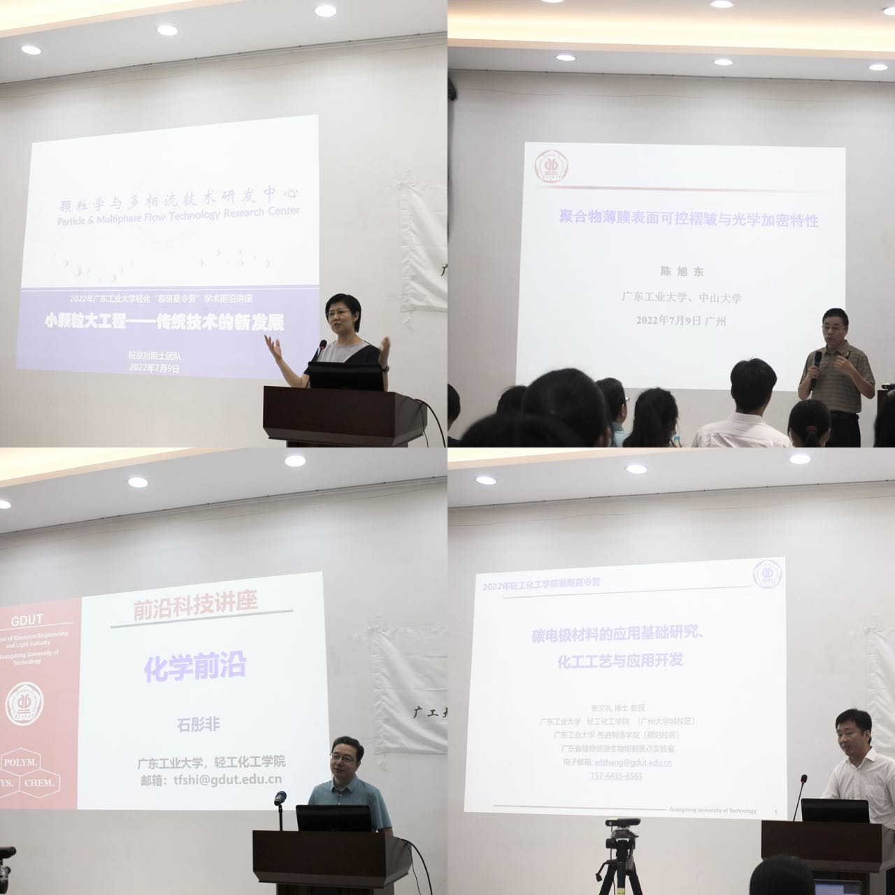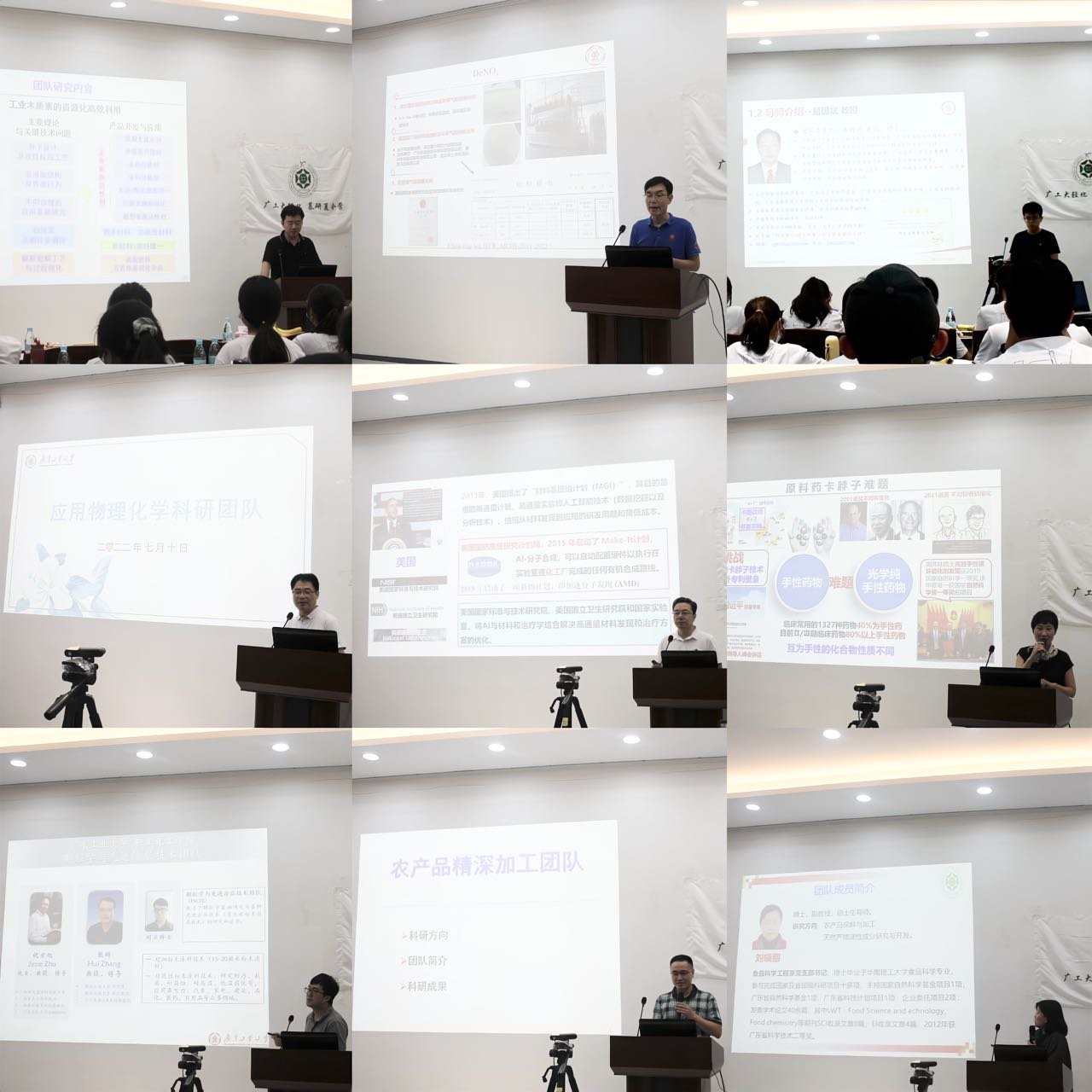 7月9日下午至7月10日上午,学院18个不同团队的导师为营员们分享介绍了各个科研团队的基本情况。他们分别介绍了木质纤维素高值化利用、清洁化学技术、绿色能源催化、有机资源高效利用、聚合物功能材料、有机-无机杂化功能材料、有机光电材料与功能高分子、精细化工新材料、精细有机合成与特种功能材料、电化学纳米能源、先进能源材料与器件、无机光电功能材料、应用物理化学、农产品精深加工、香飘三创食品与健康、高分子材料智能设计与制造、手性催化与新药合成、颗粒学与先进涂层技术等研究方向,展示各团队近年来所取得的科研成果、今后的发展目标以及对研究生的培养方案。会后营员们纷纷表示受益匪浅,更加明确了未来选择科研道路的方向,同时对各科研团队也有了更进一步的了解。